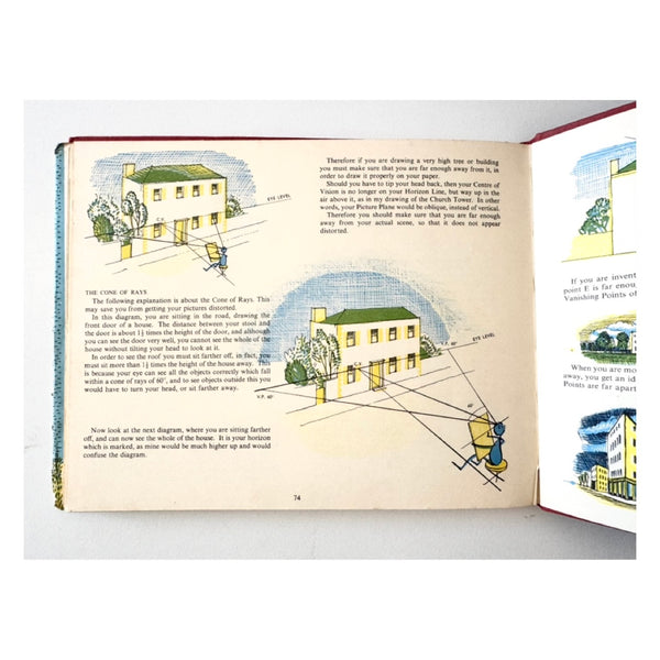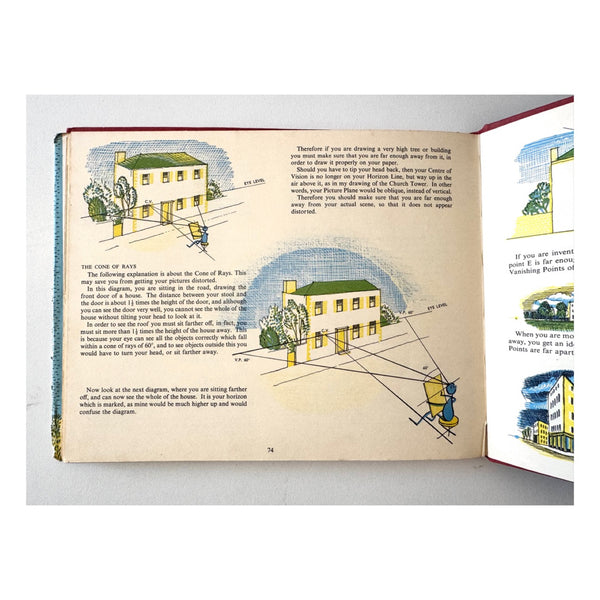 A Book of Pictorial Perspective by Gwen White is a mid-century classic that transforms geometry into a thing of beauty. First published in 1955, this book features remarkable illustrations by Gwen Wight, which are printed in a special back-to-back arrangement so that when held up to the light the basic construction and the finished coloured picture are seen together.